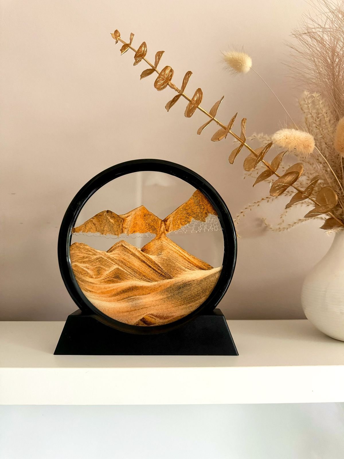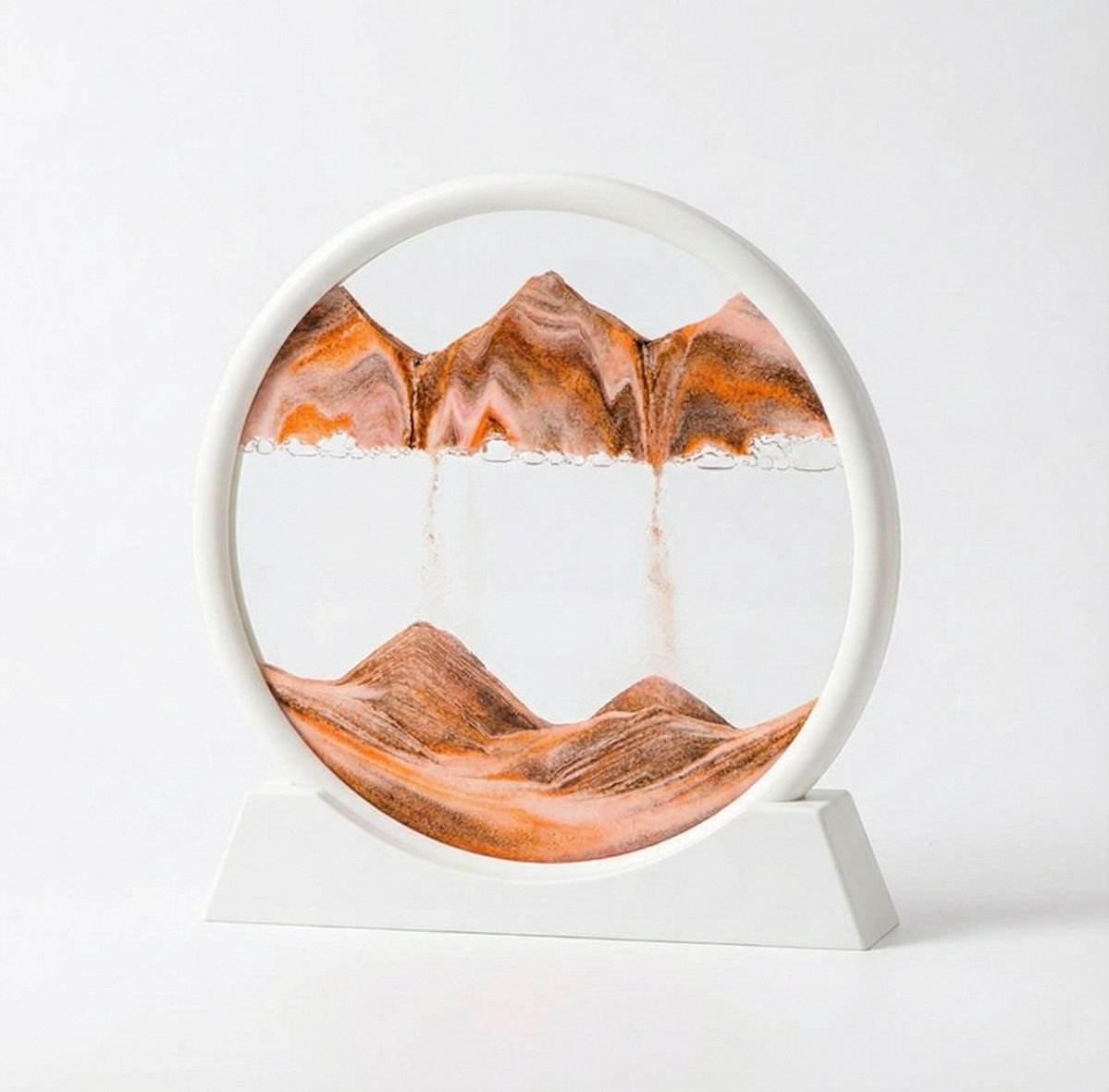 আমাদের এই Moving Sandscape ফ্রেমটি আপনার ড্রয়িং রুম বা অফিস ডেস্কে নিয়ে আসবে এক অদ্ভুত মায়াবী পরিবেশ। এটি কেবল একটি সাধারণ শোপিস নয়, এটি একটি জীবন্ত শিল্পকর্ম! প্রতিবার ফ্রেমটি ঘোরালেই বালির কণাগুলো নিচে পড়ে তৈরি করে নতুন নতুন আল্পনা। ঠিক যেন সময়ের সাথে পাল্টে যাওয়া প্রকৃতির এক নিঁখুত প্রতিচ্ছবি।