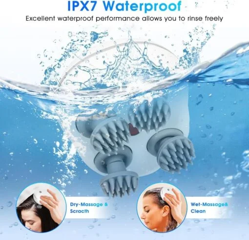 এক ডিভাইসে মাথা থেকে পা পর্যন্ত আরামদায়ক ম্যাসাজ। এর ৪টি ঘূর্ণায়মান ম্যাসাজ হেড মাথার স্ক্যাল্পে ডিপ নিডিং করে রক্ত সঞ্চালন বাড়ায়, স্ট্রেস কমায়, চুলের গোড়ায় পুষ্টি যোগায় এবং মানসিক প্রশান্তি আনে।